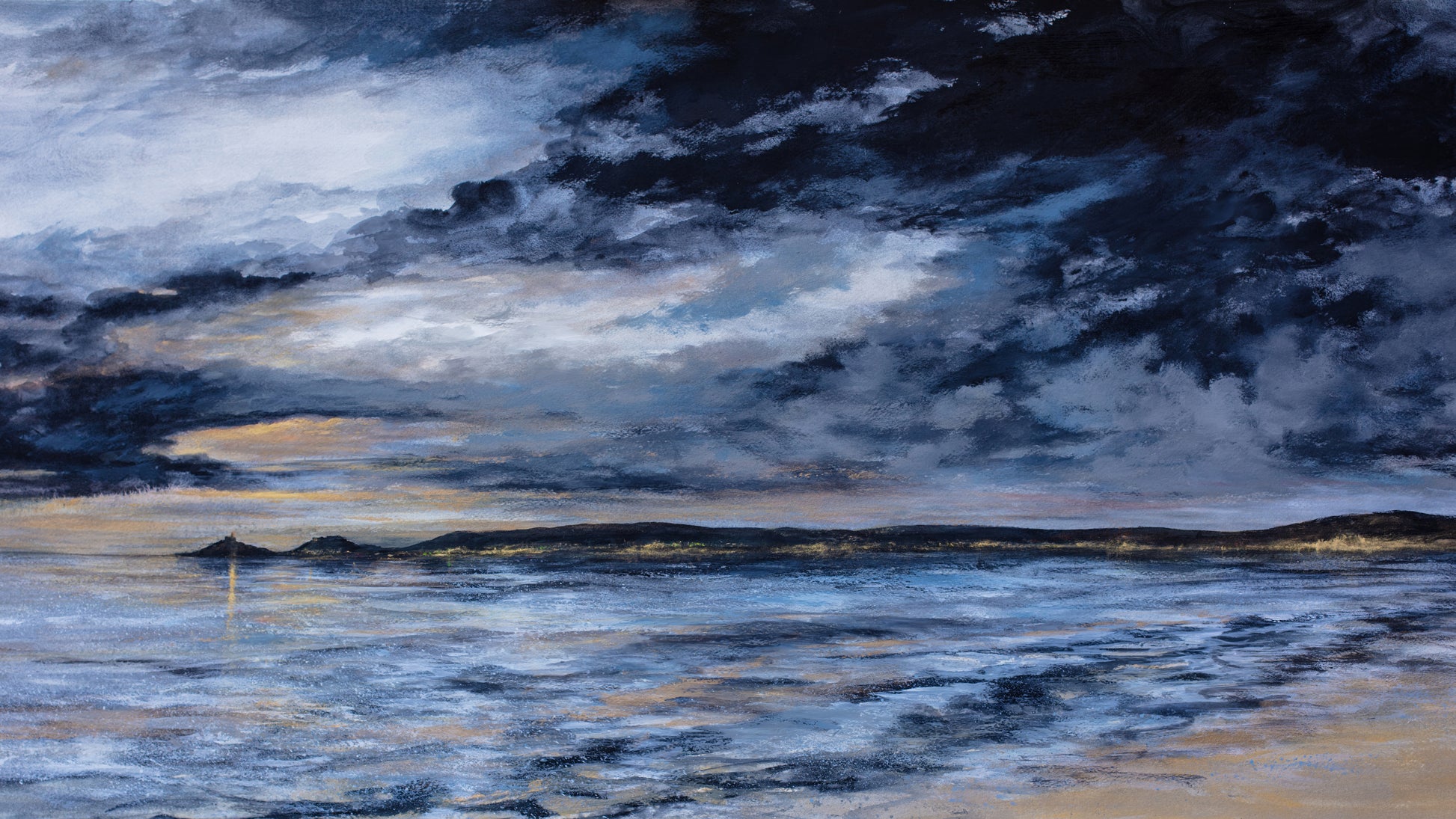 This print captures the view across Swansea Bay towards Mumbles in South Wales.