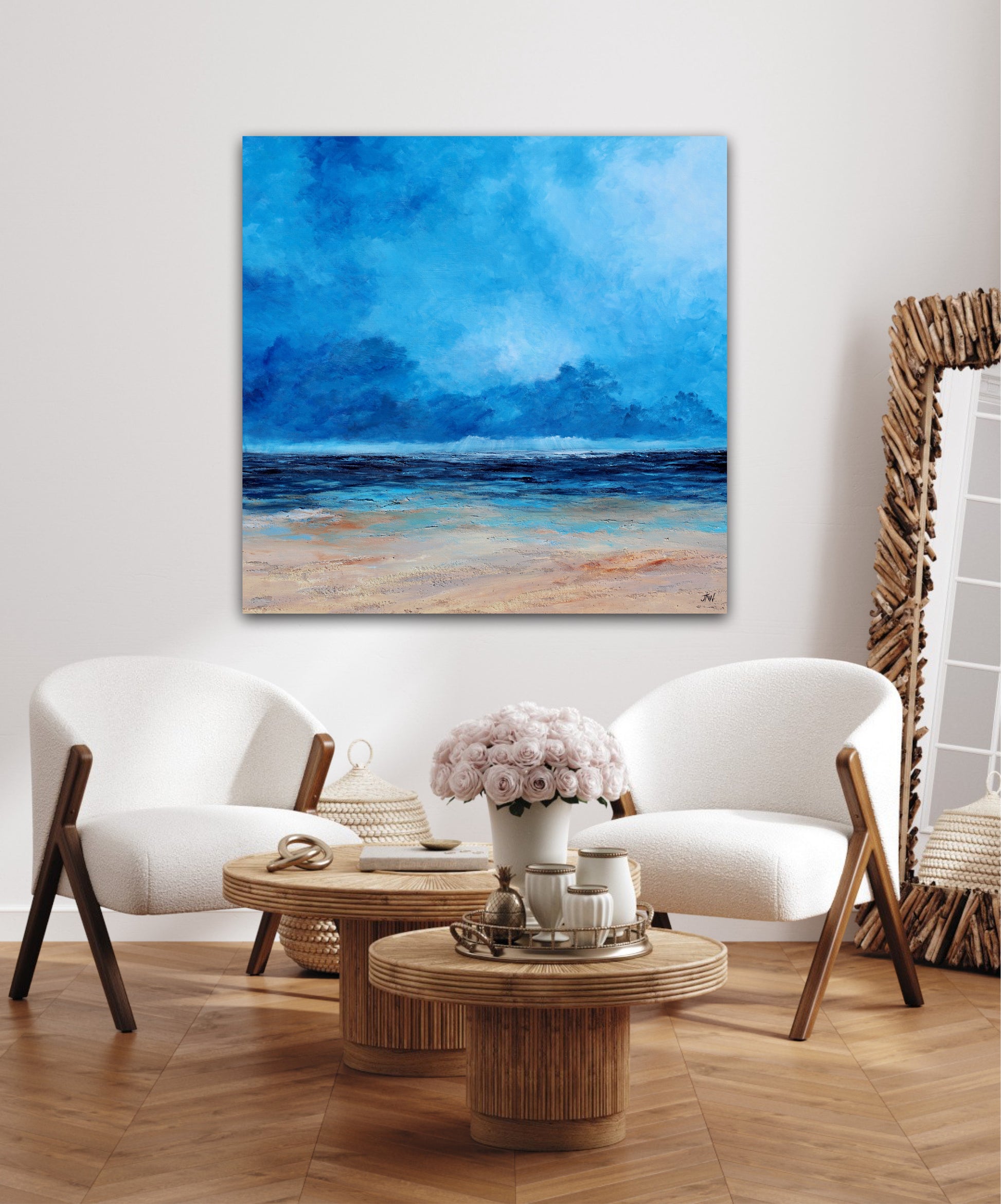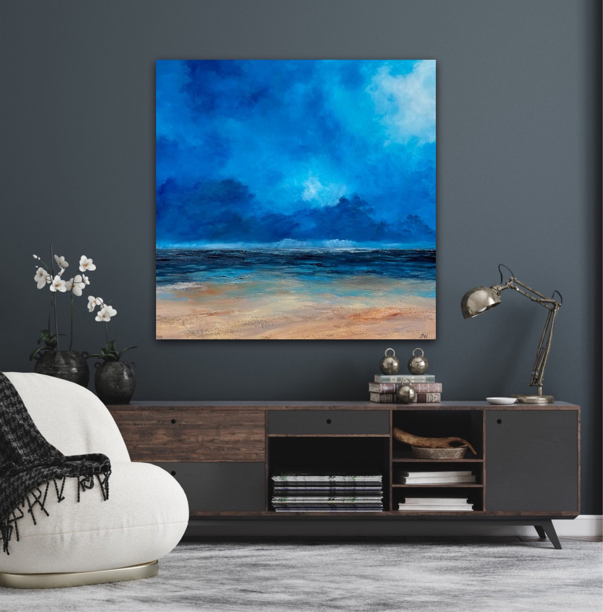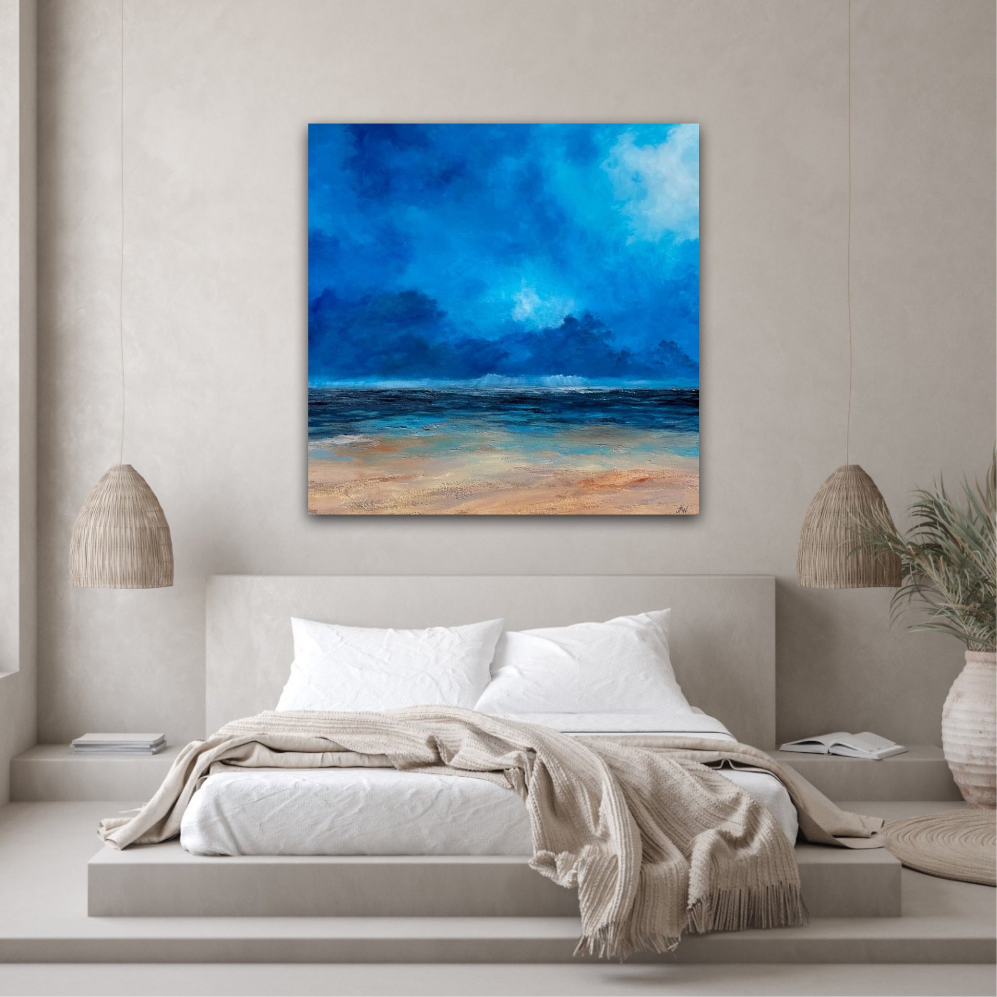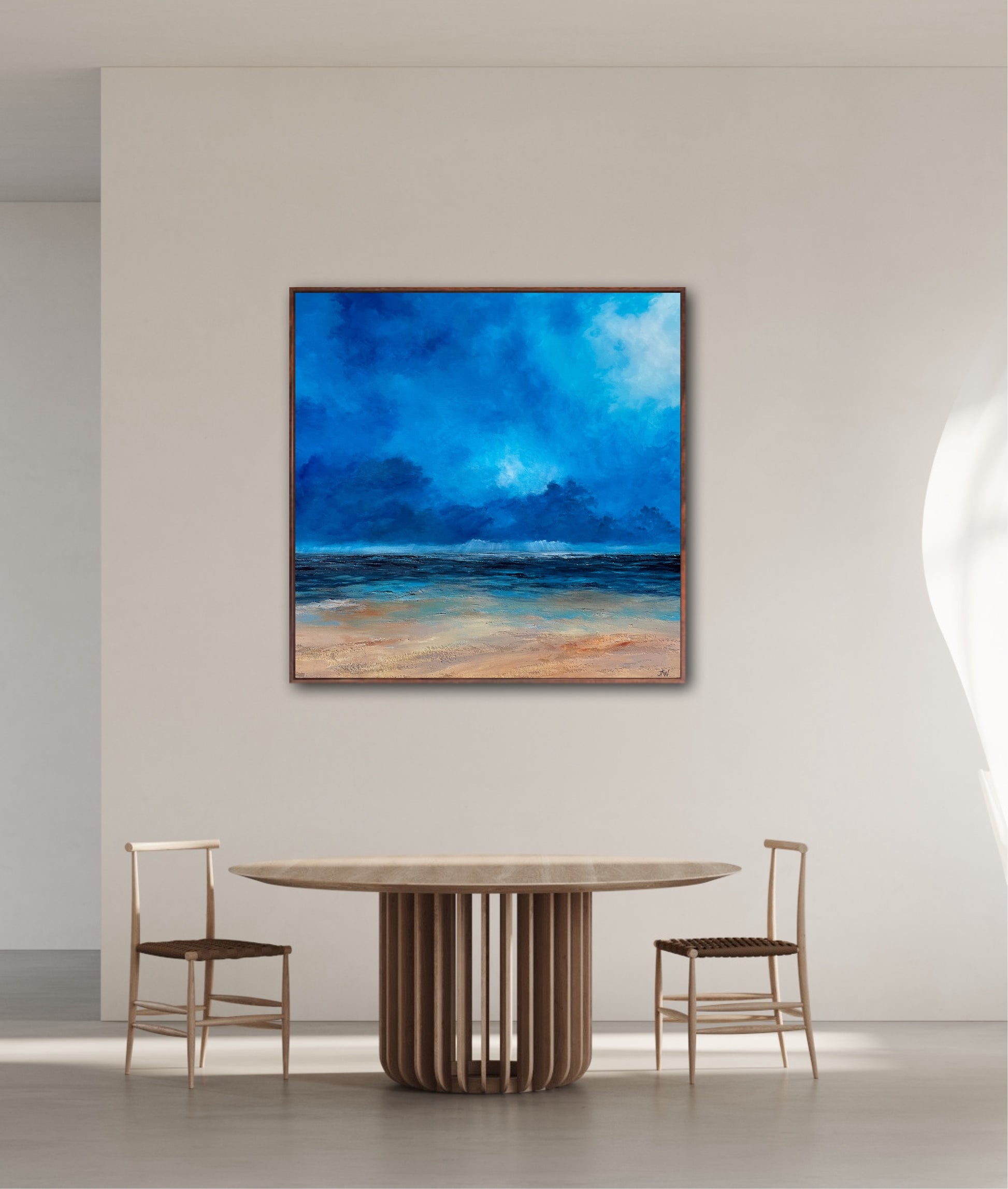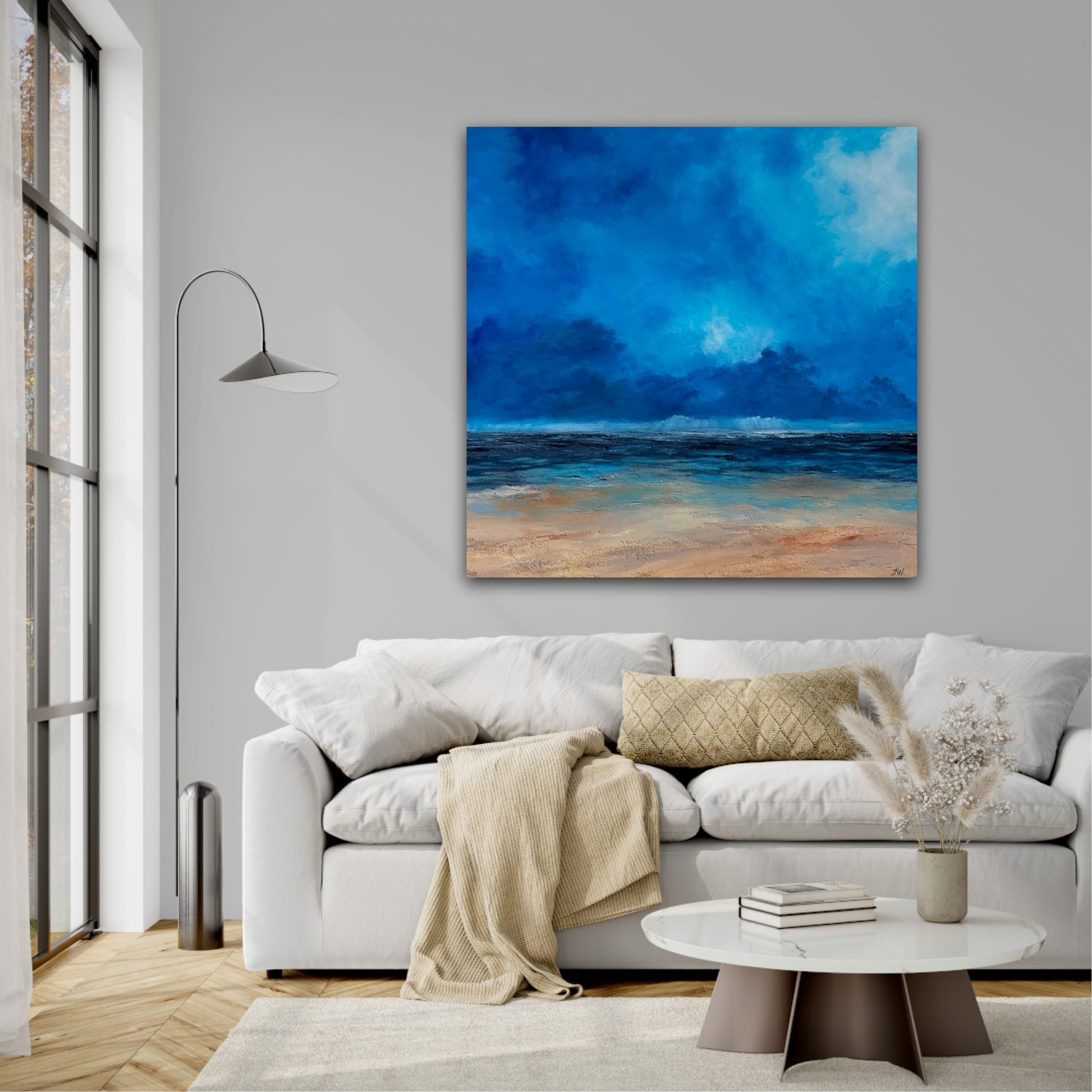 Deep edge canvas with the painting continued around the edges, giving the option of framing or leaving the painting unframed