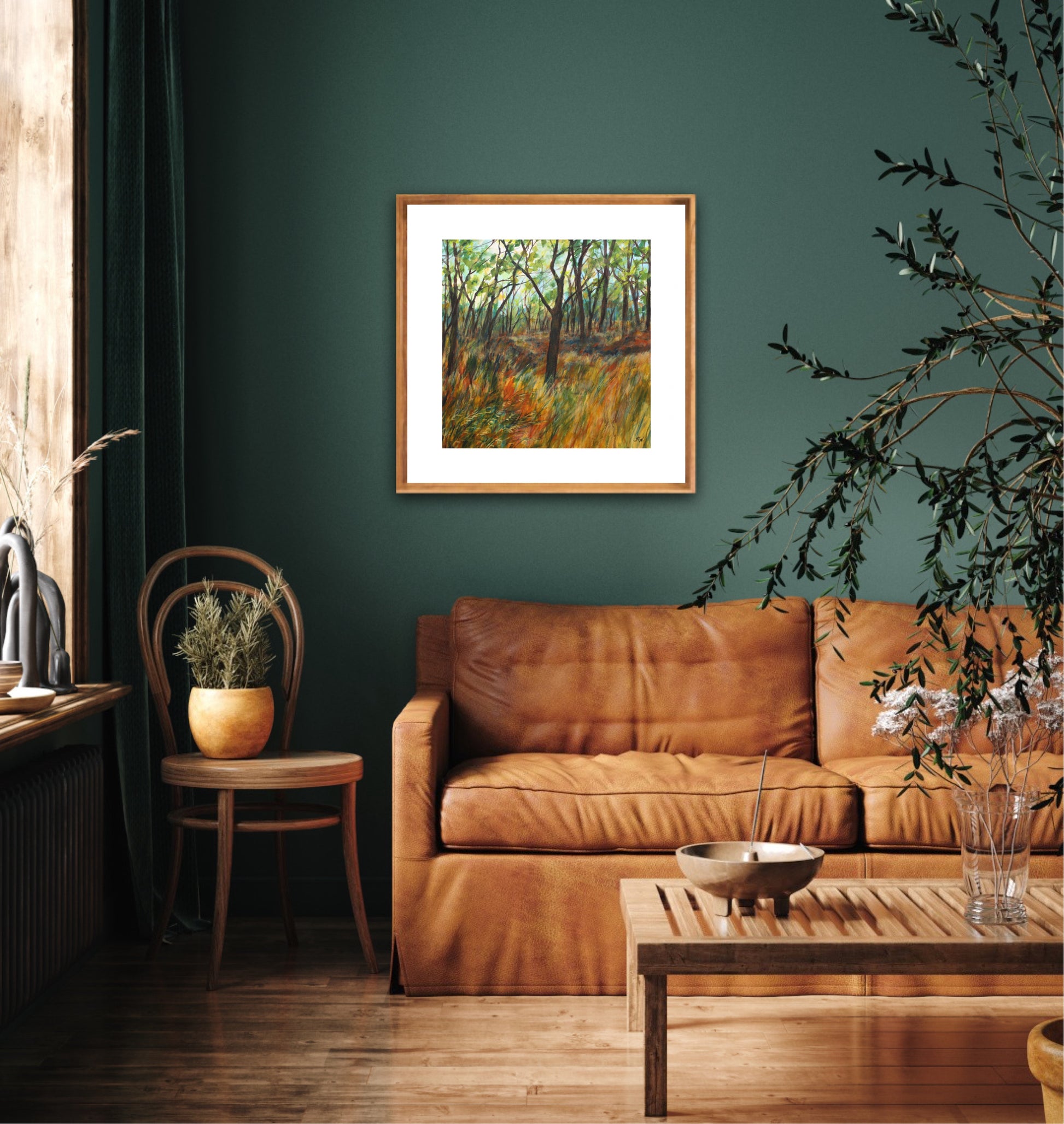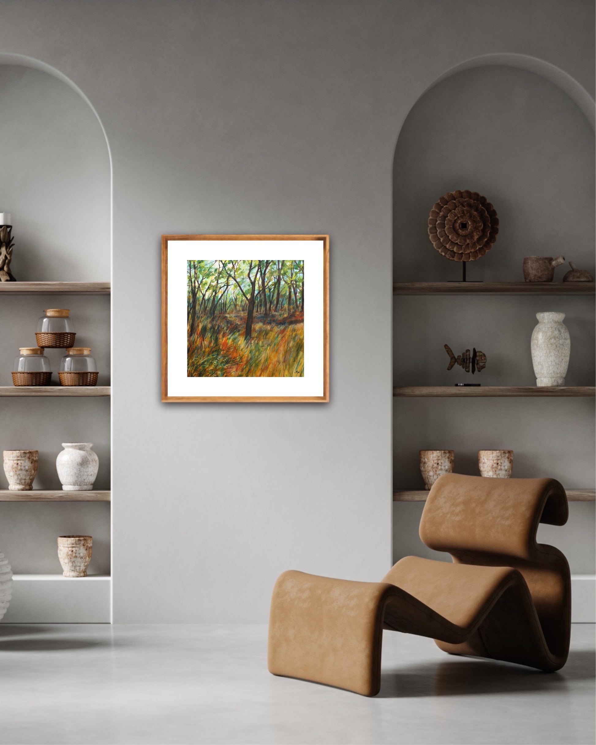 Inspired by the scenic bushland along the drive up to O’Reilly’s Plateau. The dappled sunlight filtering through the trees, earthy tones of grass and undergrowth capturing beauty of the Australian bush.