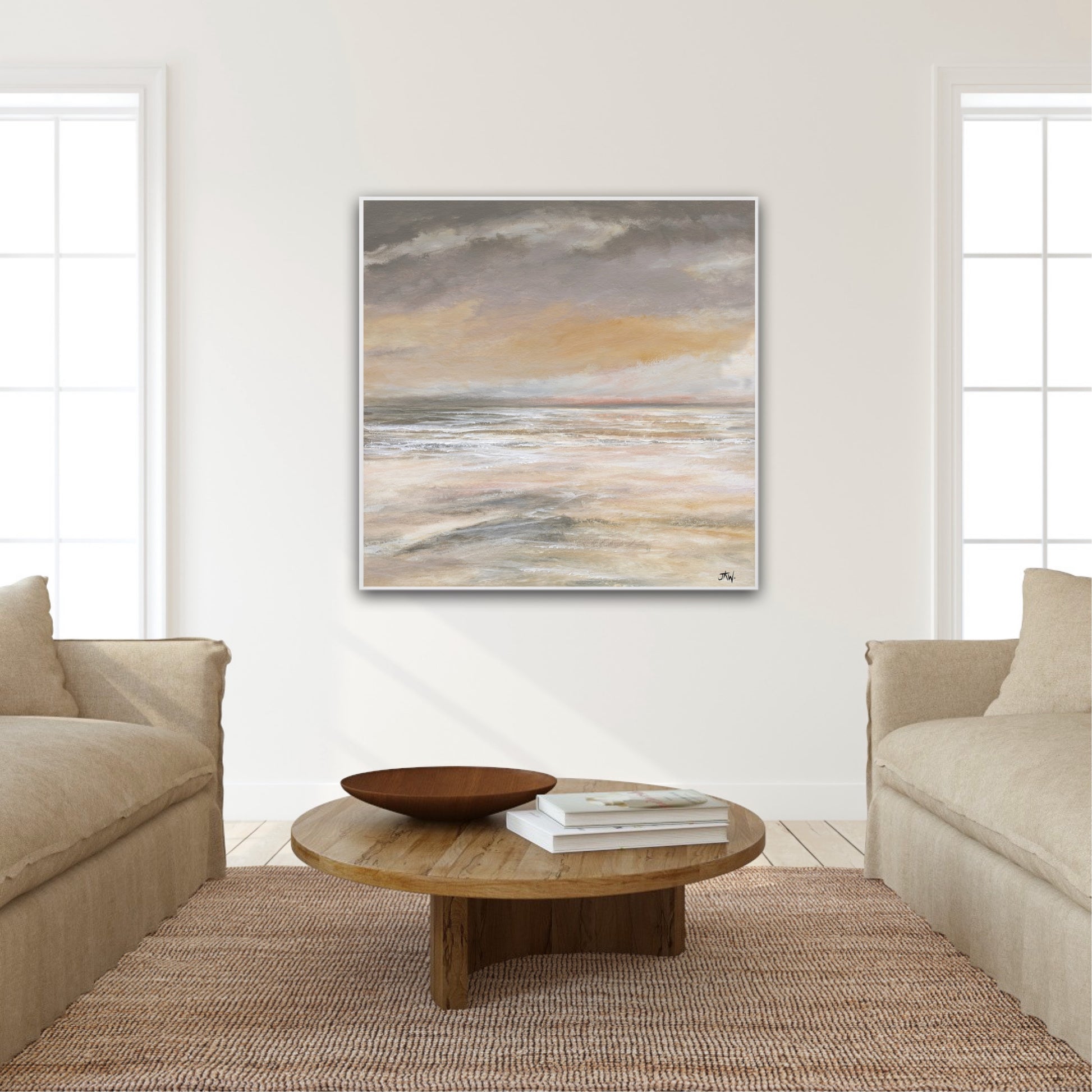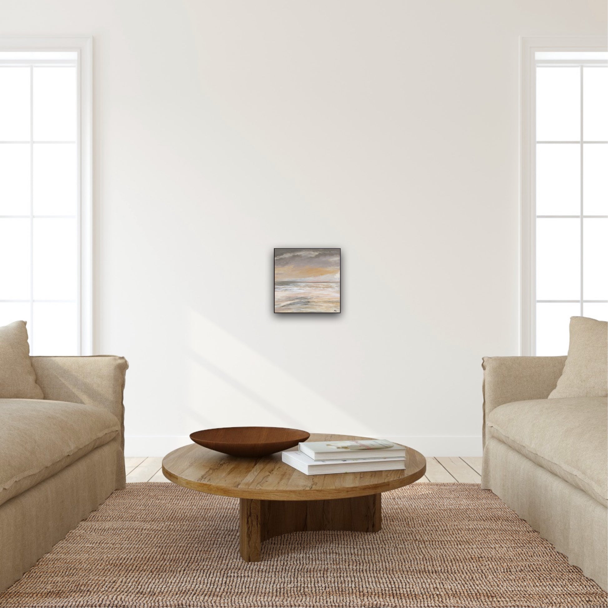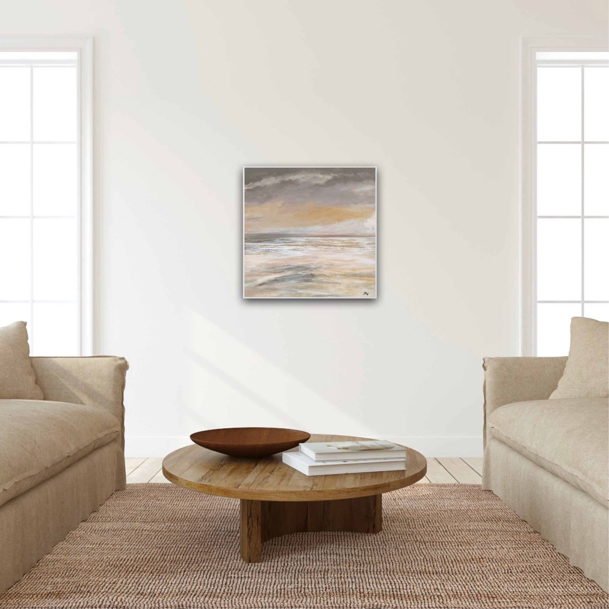 A quiet evening stroll along the beach inspired this painting. It had rained earlier but it was still warm as the sun was disappearing just before night fall.