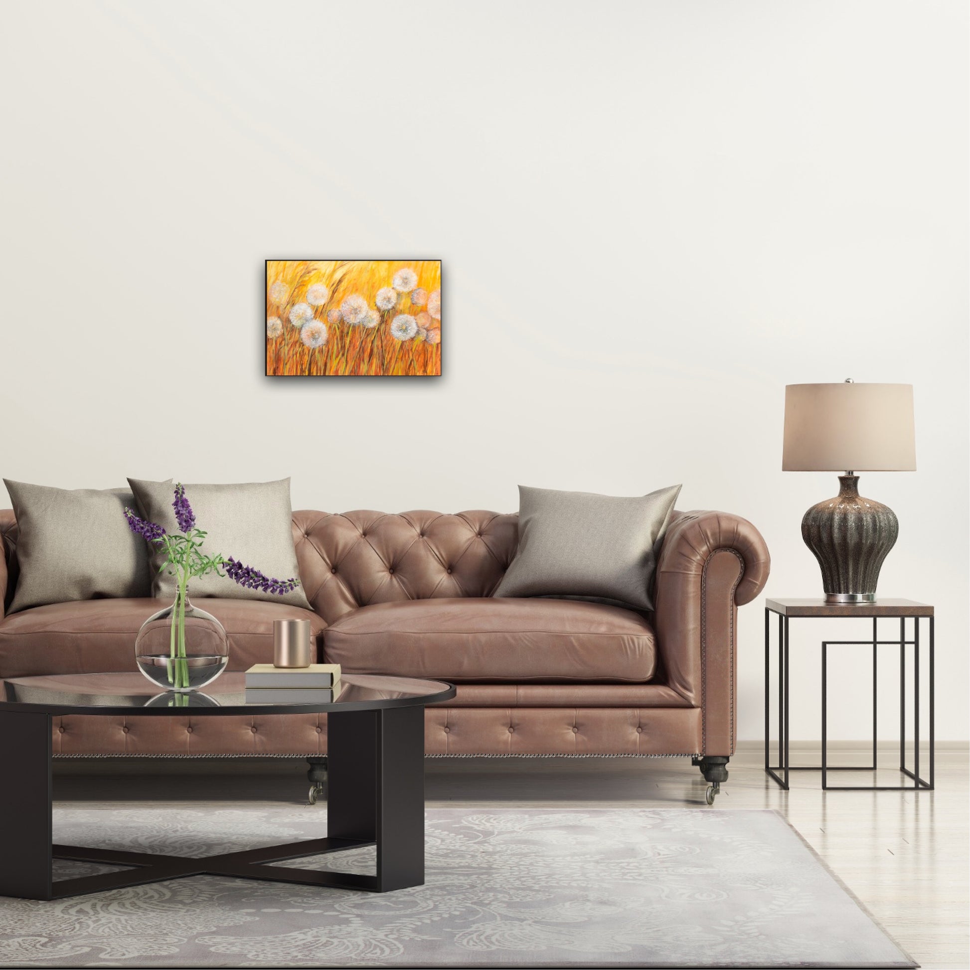 This print is based on a painting inspired by walking through the local farmland on a Sunday afternoon, with warm sunlight reflecting off the golden grasses and dandelions gently swaying in the breeze.