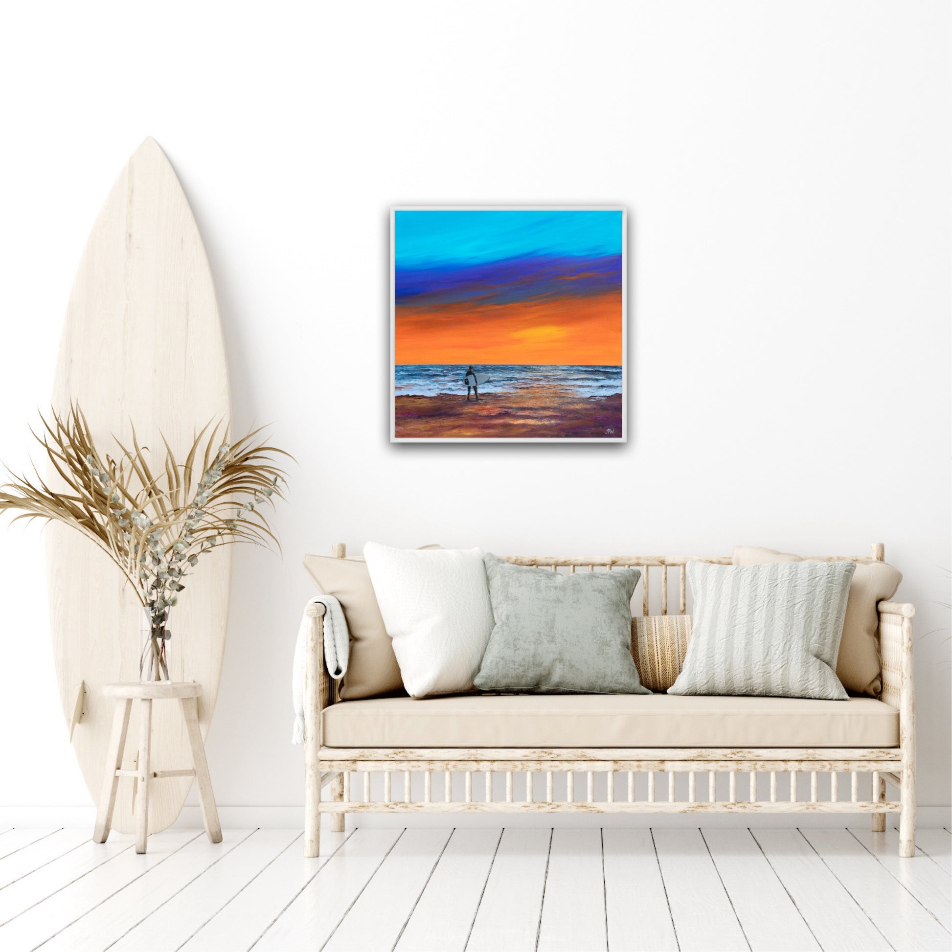 Deep edge canvas with the painting continued around the edges, giving the option of framing or leaving the painting unframed