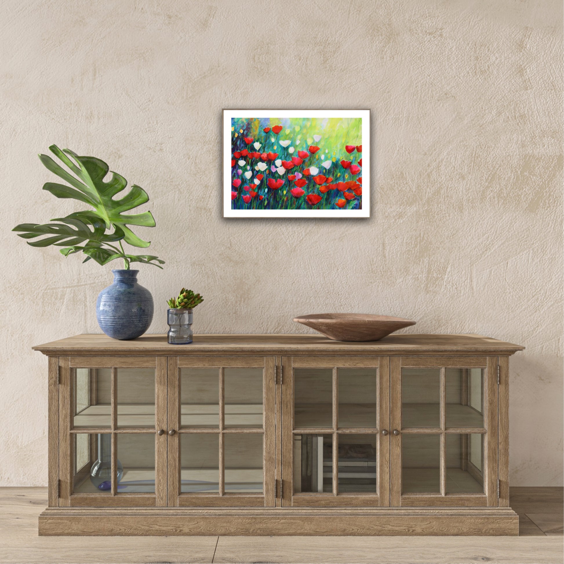 Poppies swaying in the morning light, a burst of colour and happiness.