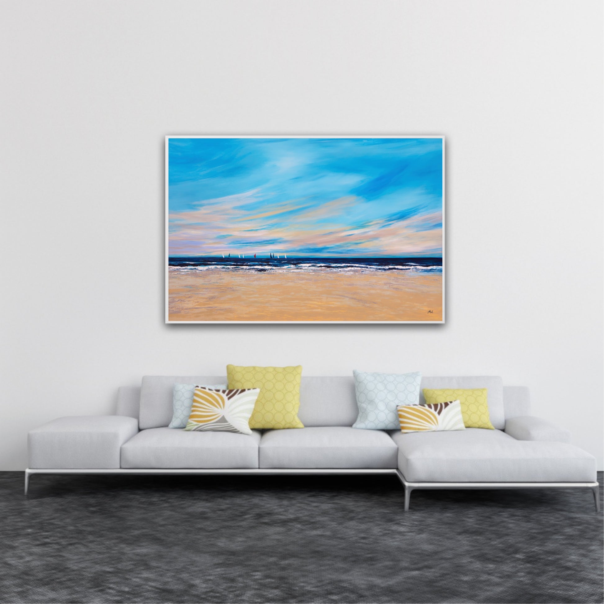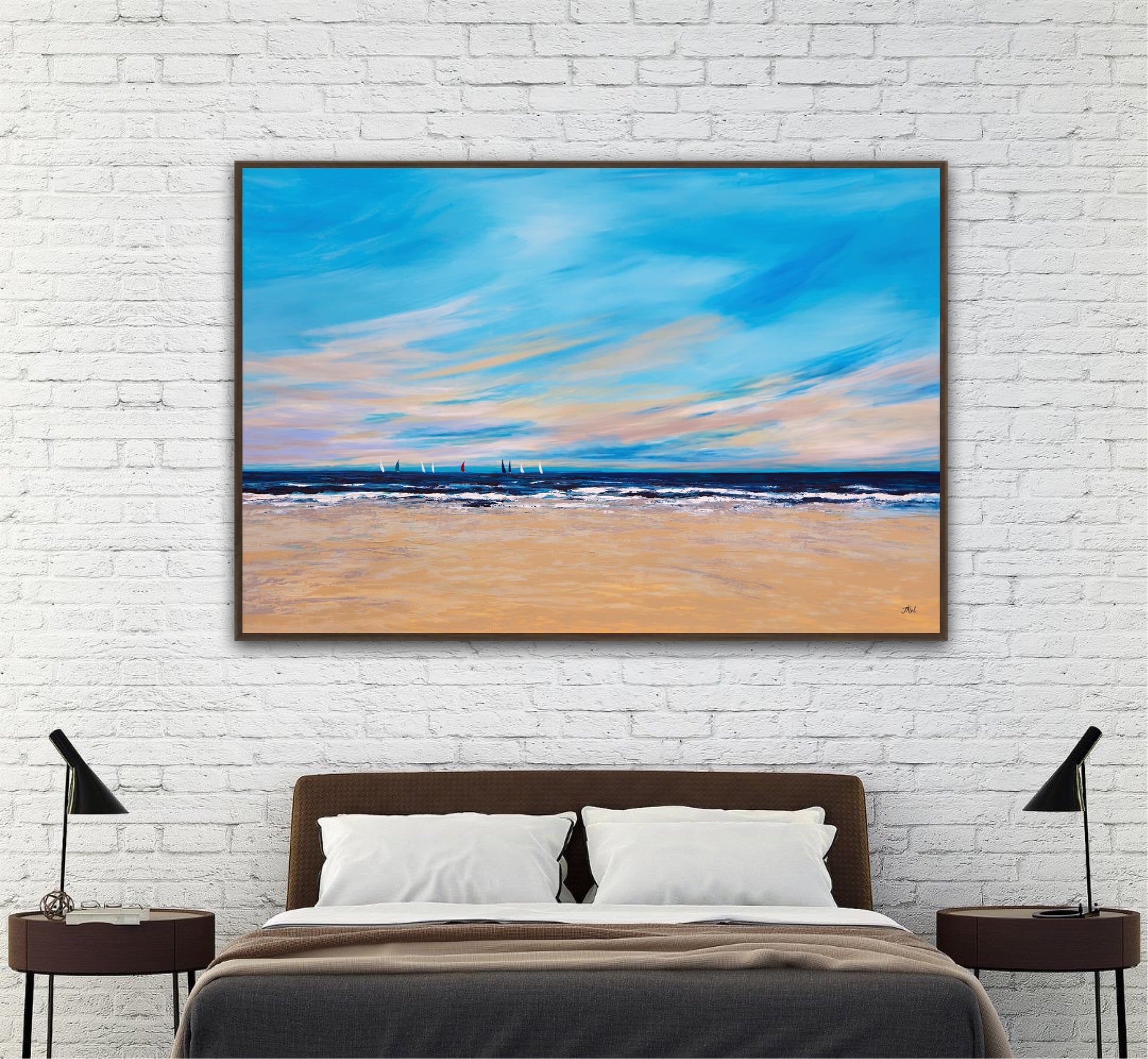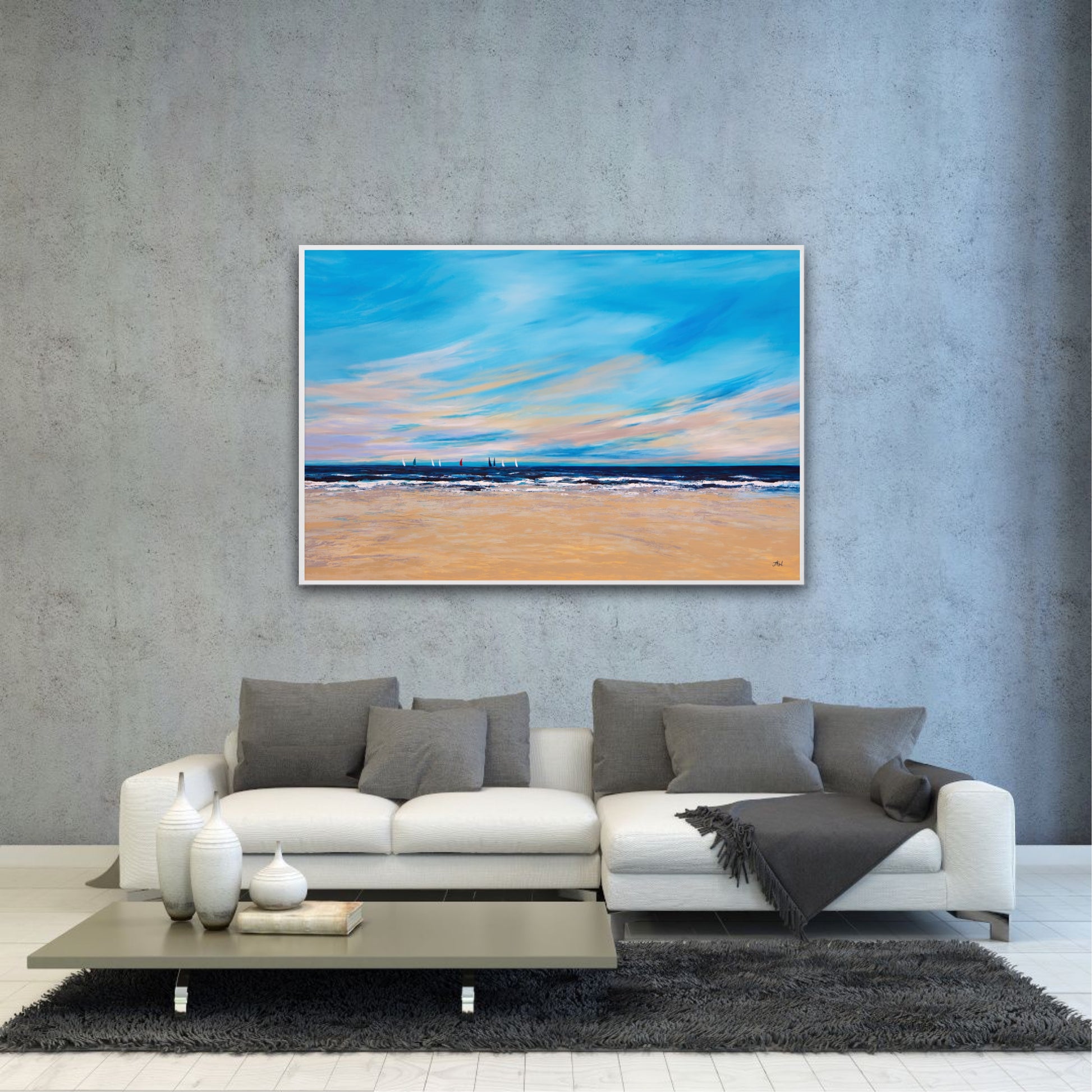 Deep edge canvas with the painting continued around the edges, giving the option of framing or leaving the painting unframed