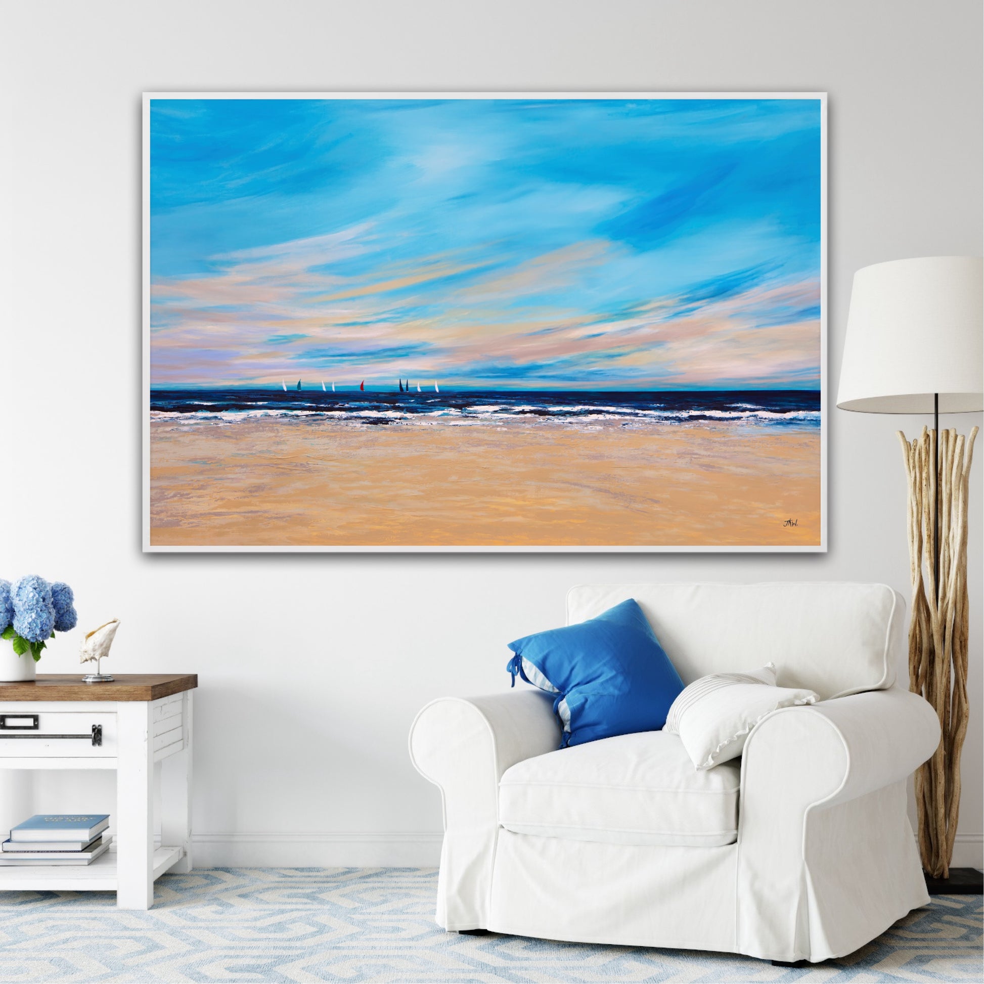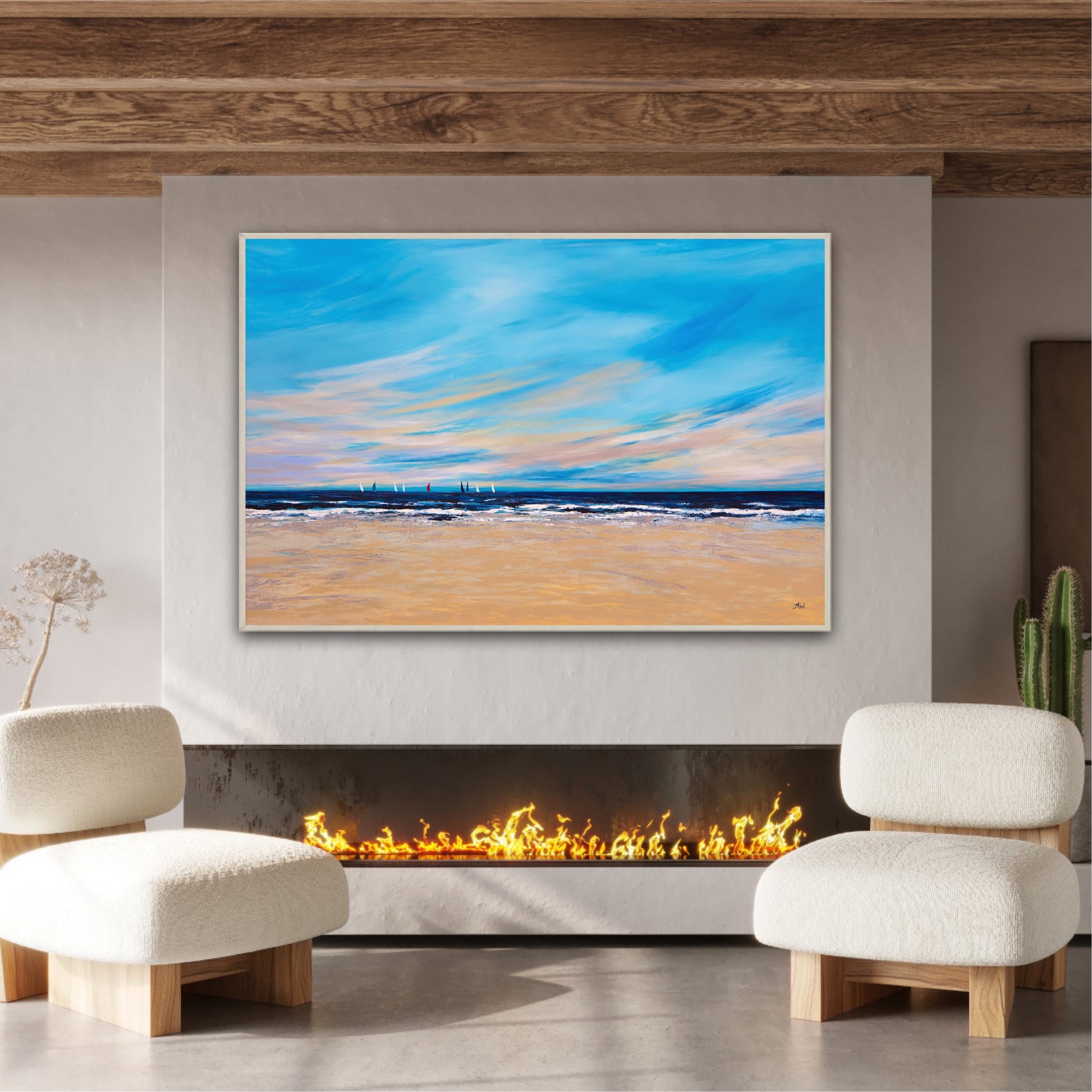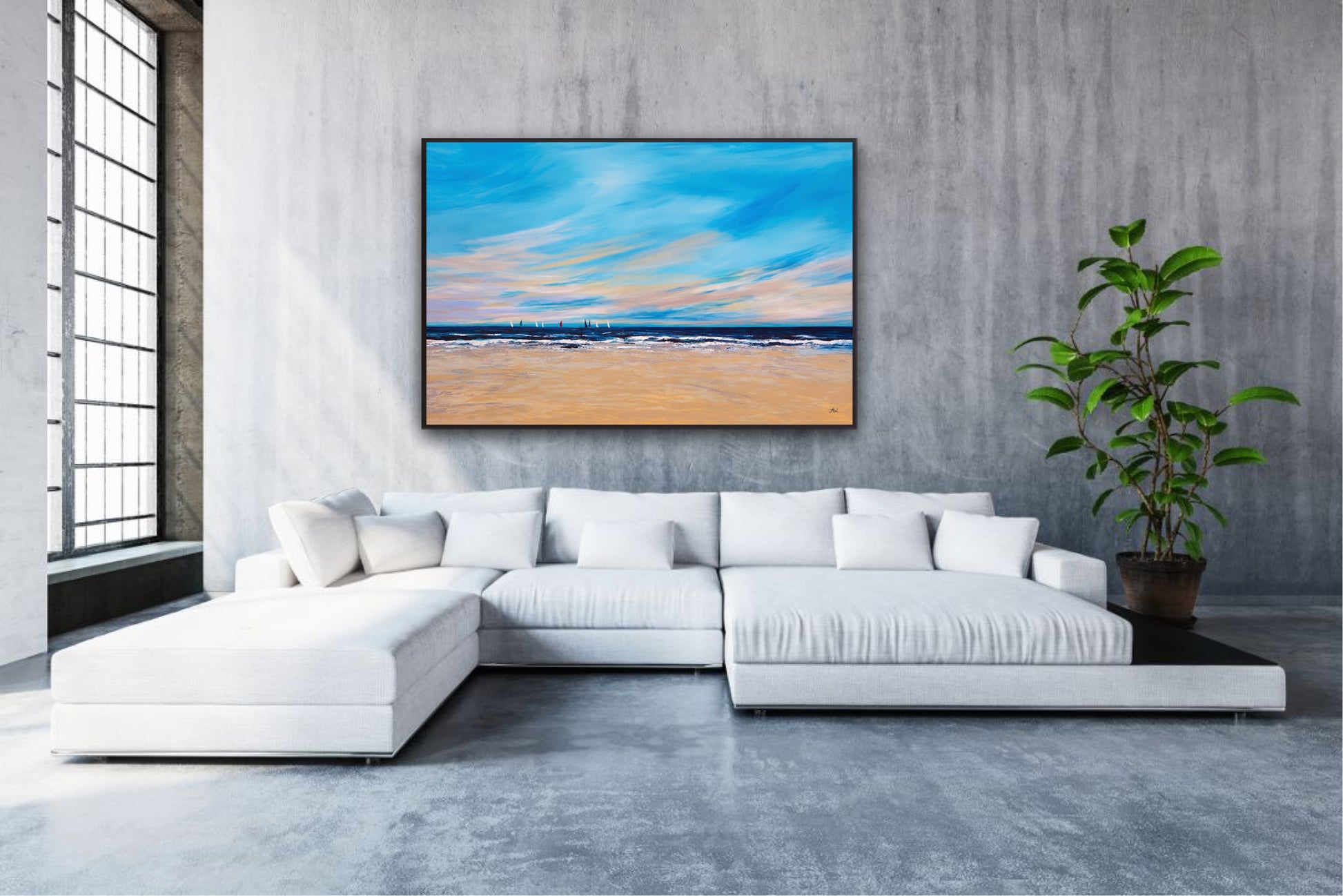 Deep edge canvas with the painting continued around the edges, giving the option of framing or leaving the painting unframed