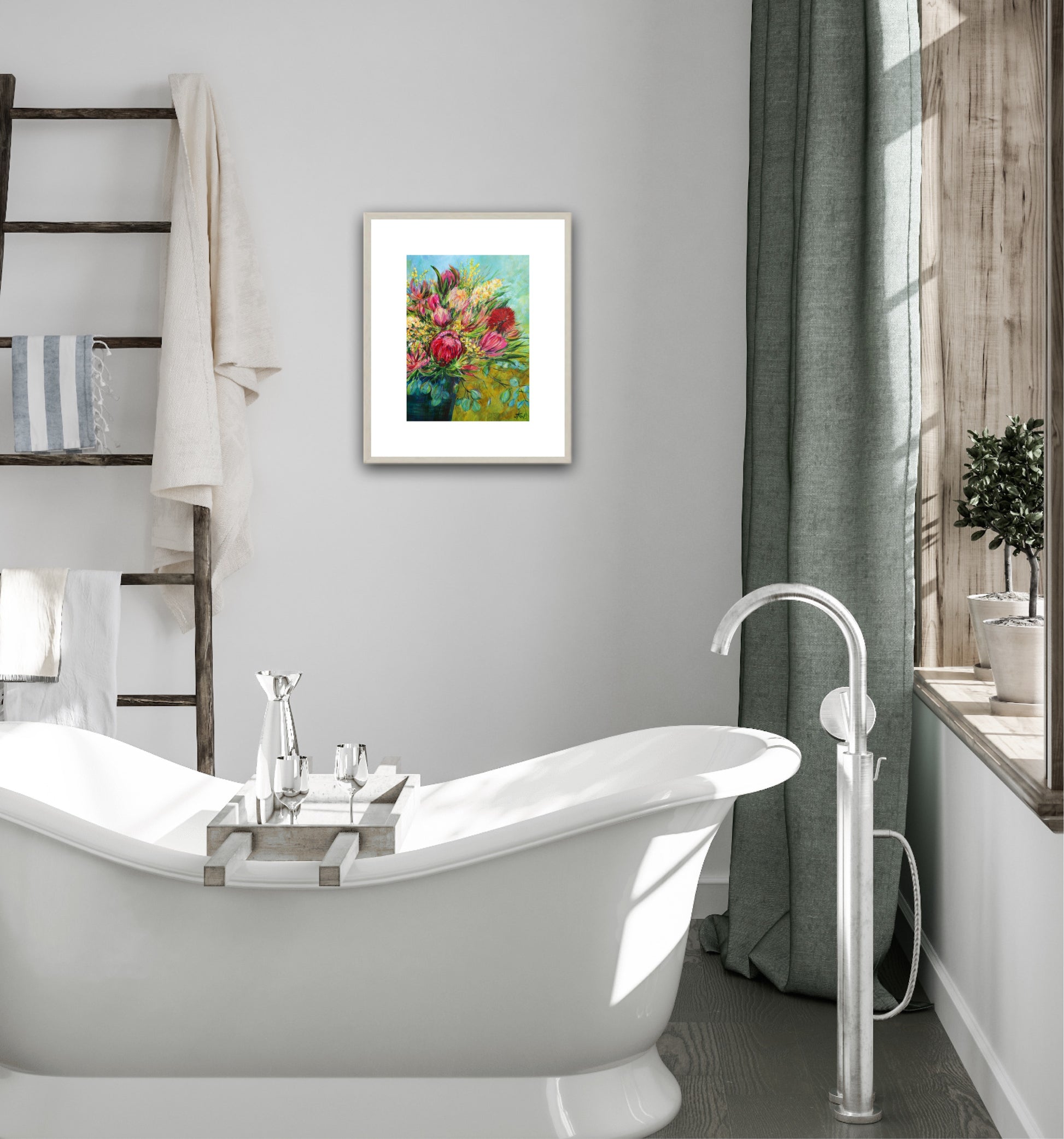 This painting was inspired by the natural beauty of Australian native flowers, capturing a bold, spiky, untamed look as if freshly picked from the bush.