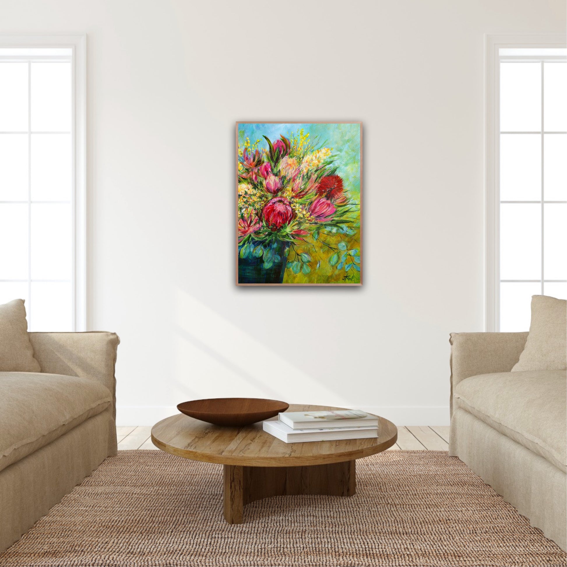 This painting was inspired by the natural beauty of Australian native flowers. It captures a bold, spiky, untamed look, as if freshly picked from the bush.