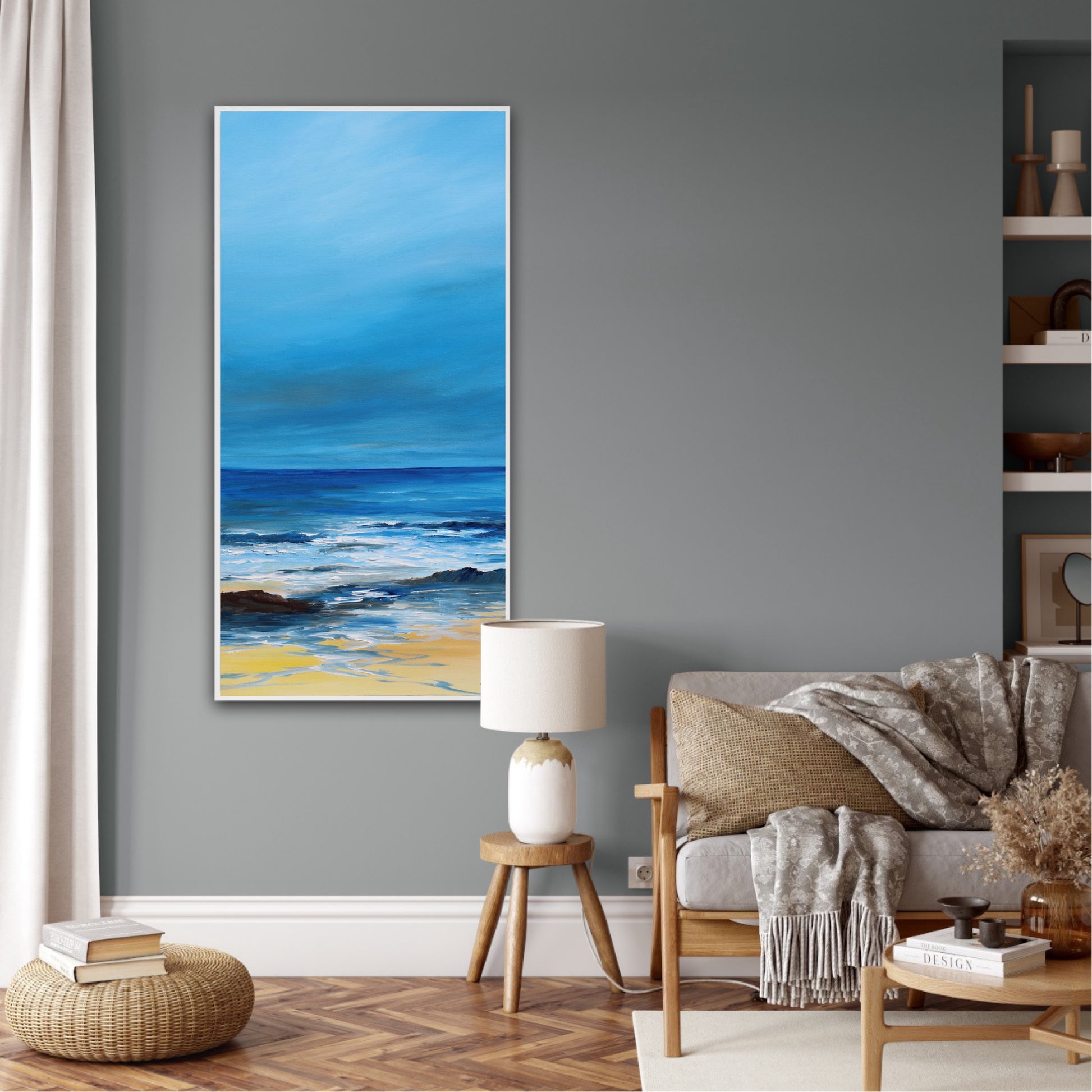 Deep edge canvas with the painting continued around the edges, giving the option of framing or leaving the painting unframed