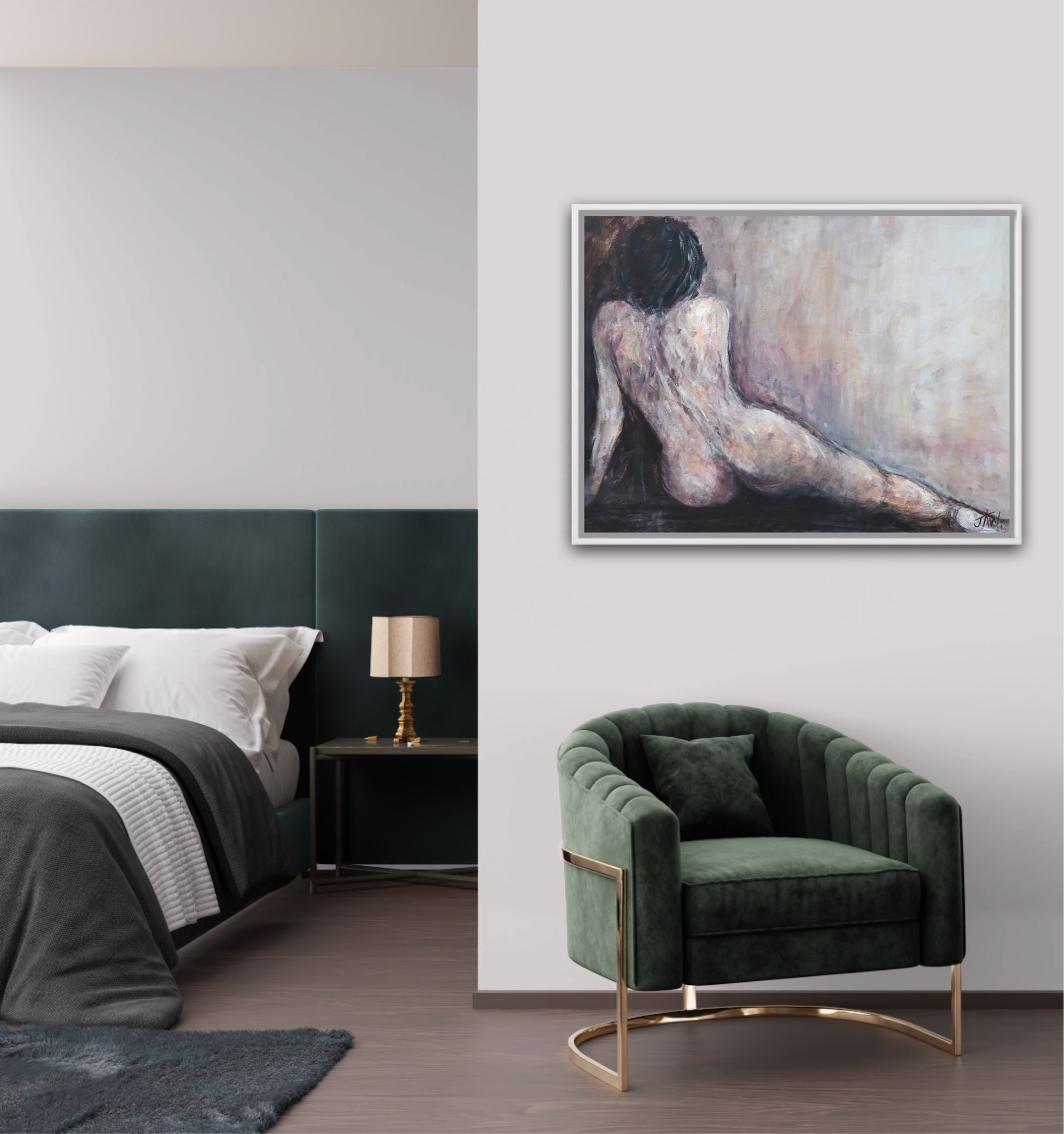 A peaceful pose, soft colours and curves.