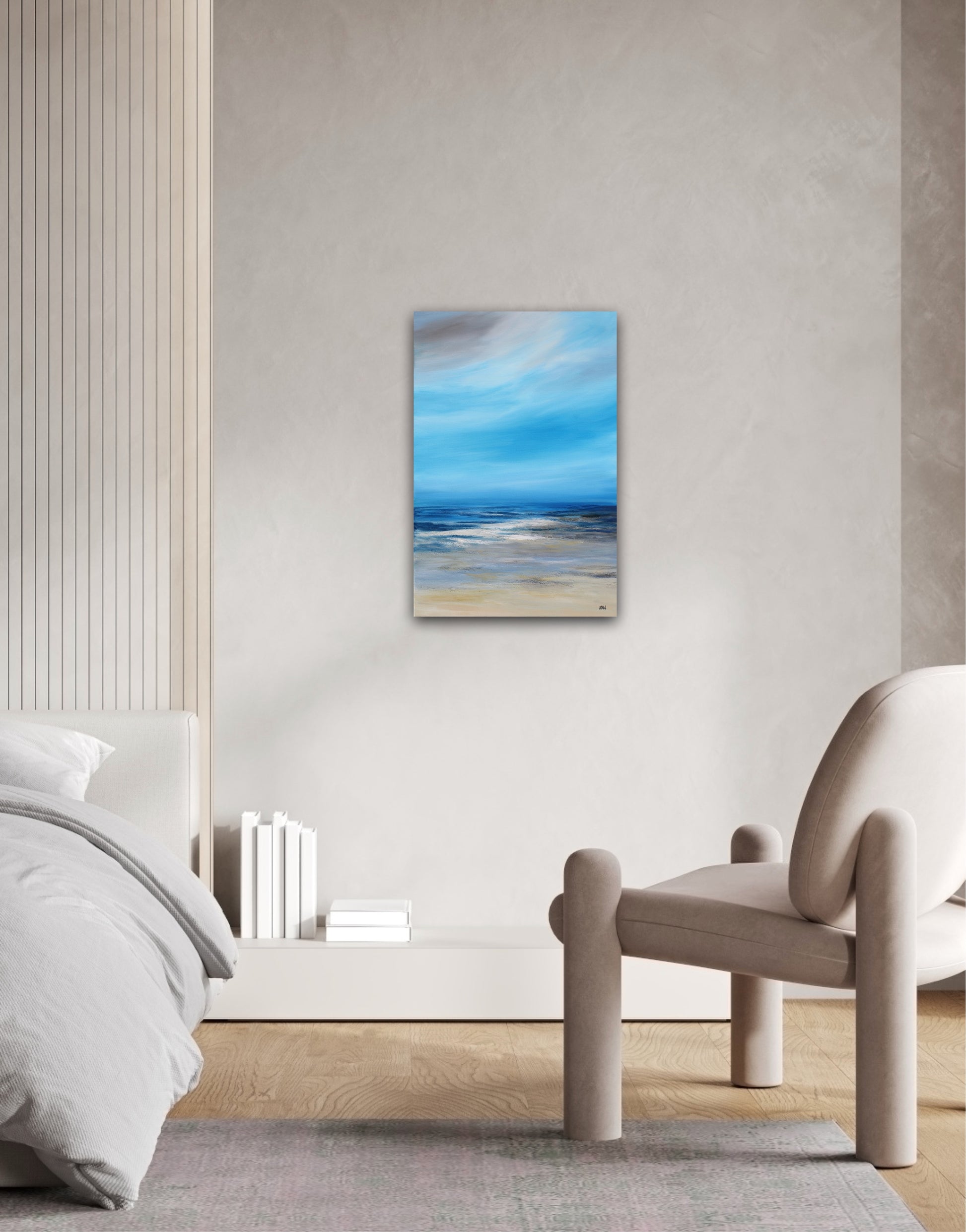 Low Tide, shifting clouds, a quiet moment of reflection captured in blues across the sky, sea and sand