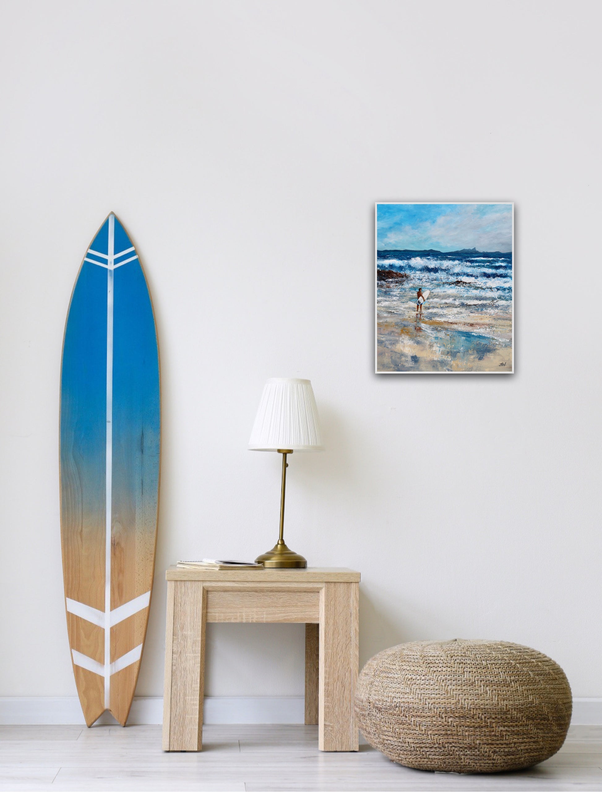 A lone surfer stands at the edge of the water on Wategos Beach, Byron Bay, contemplating…