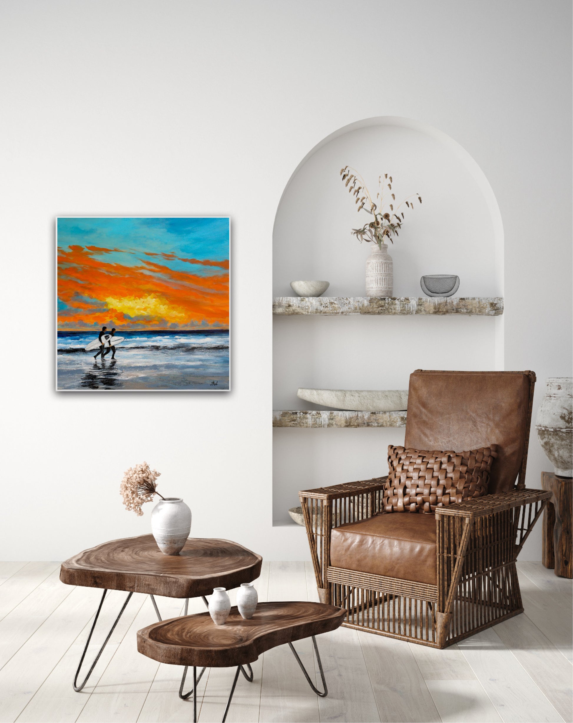 Deep edge canvas with the painting continued around the edges, giving the option of framing or leaving the painting unframed