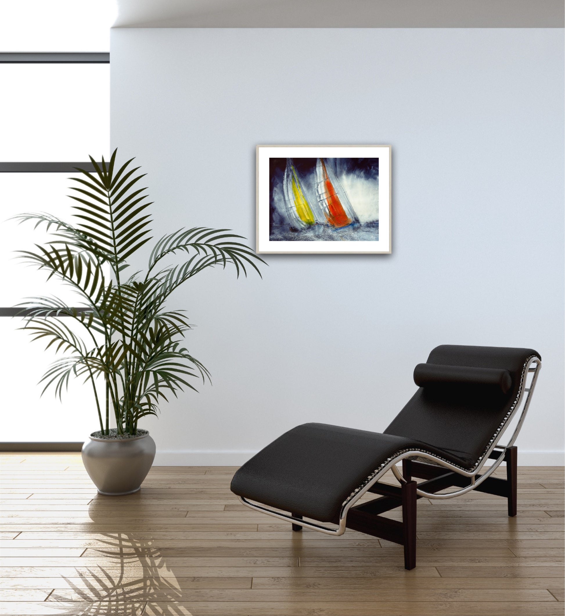 A print capturing the feeling of wind and sea spray, the thrill of the race as another yacht edges closer.