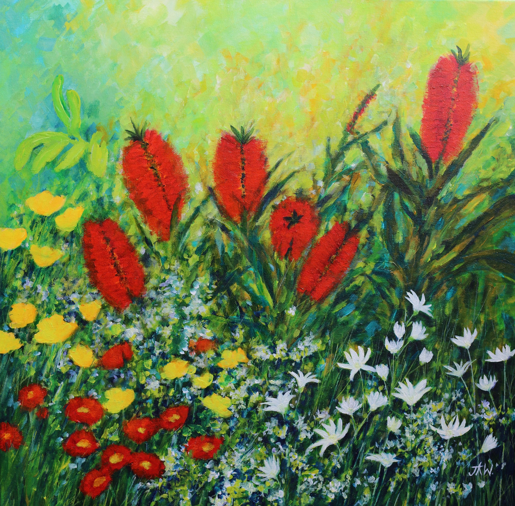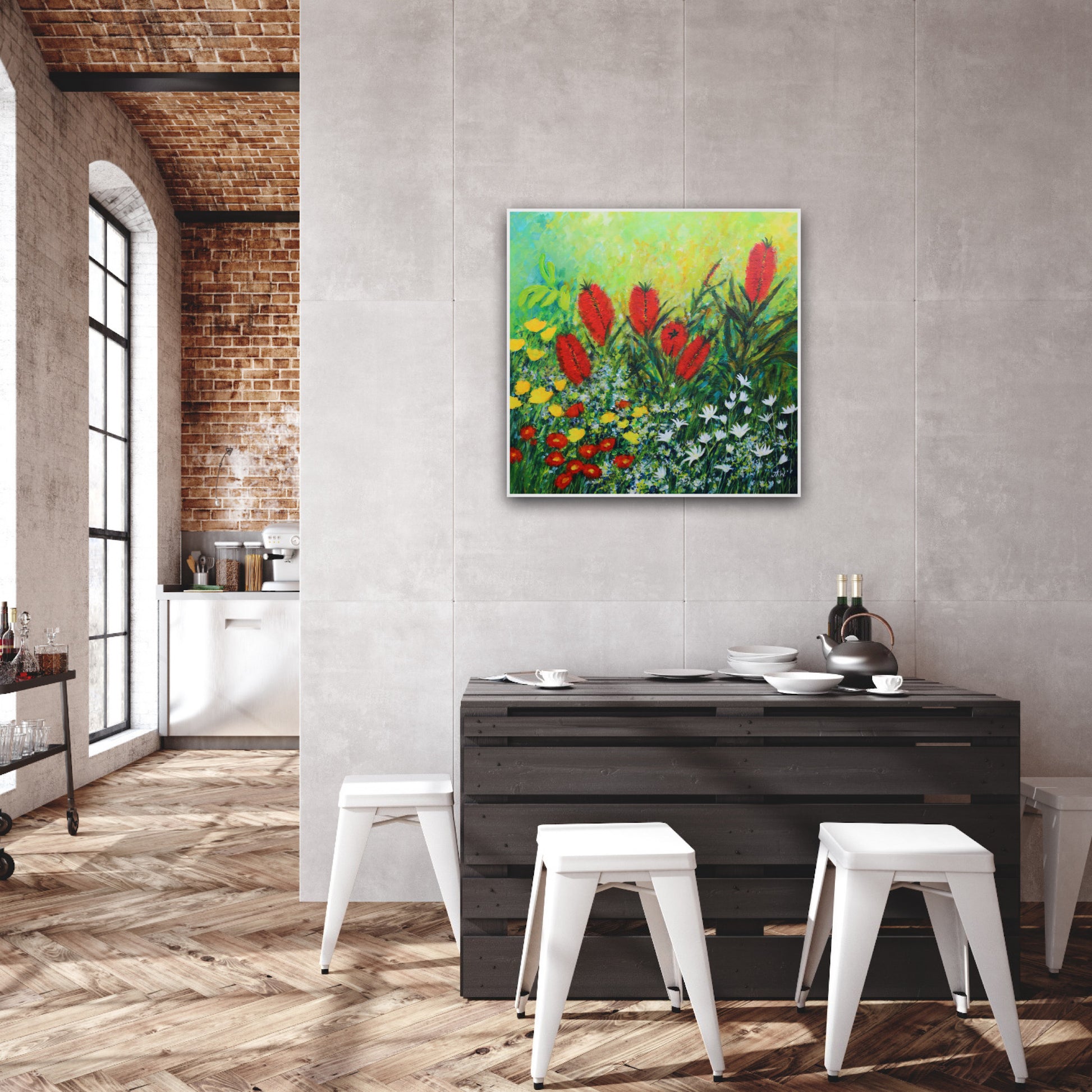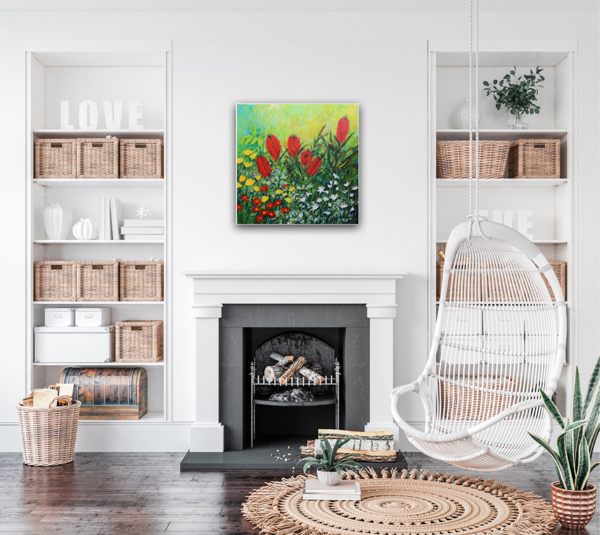 A vibrant collection of Australian native flowers, with bold colours, textures, and the untamed spirit of the natural landscape.