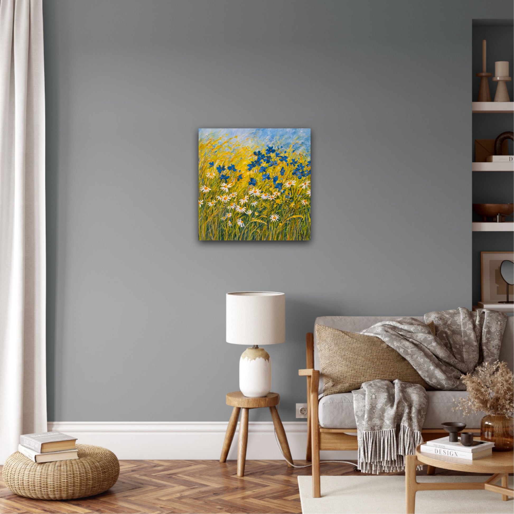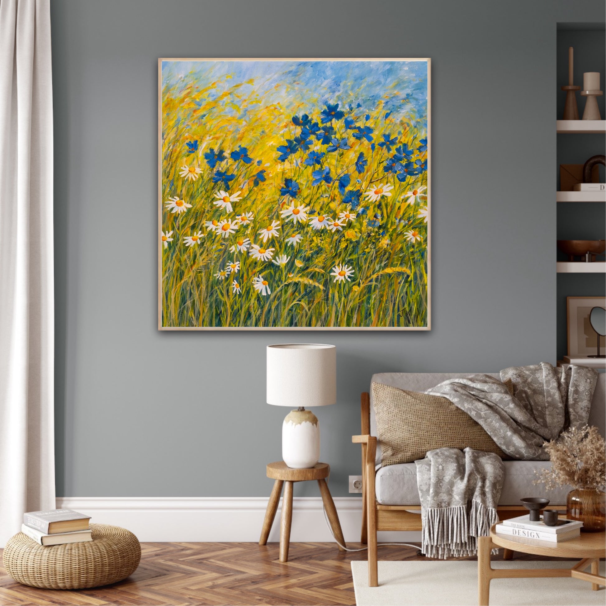 Blue Cornflowers and Daisies swaying in amongst the grasses on a late summer’s day.